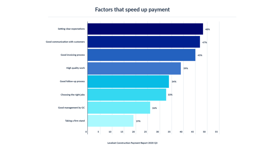 According to the survey, the three biggest factors that help contractors get paid faster boil down to one thing: Better communication.